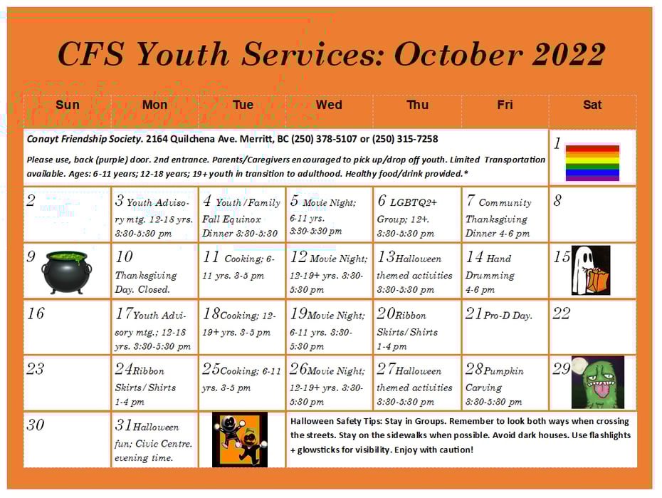 Conayt News and Events · September 27, 2022 Youth Services October Schedule Download the October Schedule Youth Services Schedule October 2022 CFS Youth Services October 2022.png Portable Network Image Format 142.7 KB Download tagPlaceholderTags: